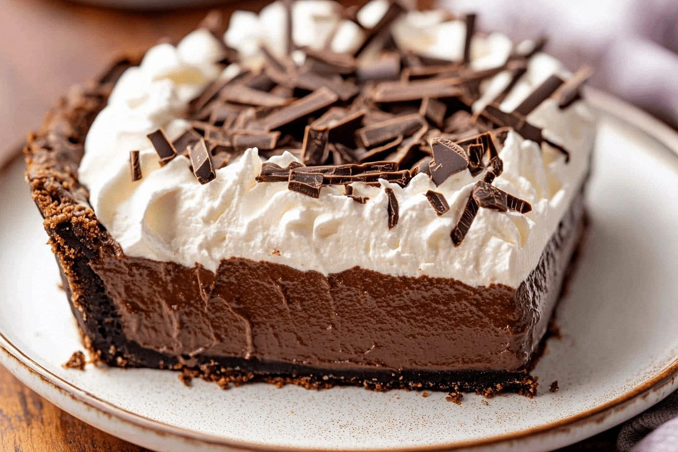 Whipped cream or ice cream tops the pie like a cloud of sweetness, providing a cool contrast to the warm chocolate. Whipped cream is light and airy, while ice cream adds a creamy texture that melts in your mouth. A scoop of vanilla ice cream on top gives a subtle vanilla note that balances the chocolate. If you’re looking for a dairy‑free option, try coconut whipped cream or a plant‑based ice cream. The topping should be added after the pie has cooled to preserve the structure of the filling. A drizzle of chocolate sauce adds an extra layer of decadence.