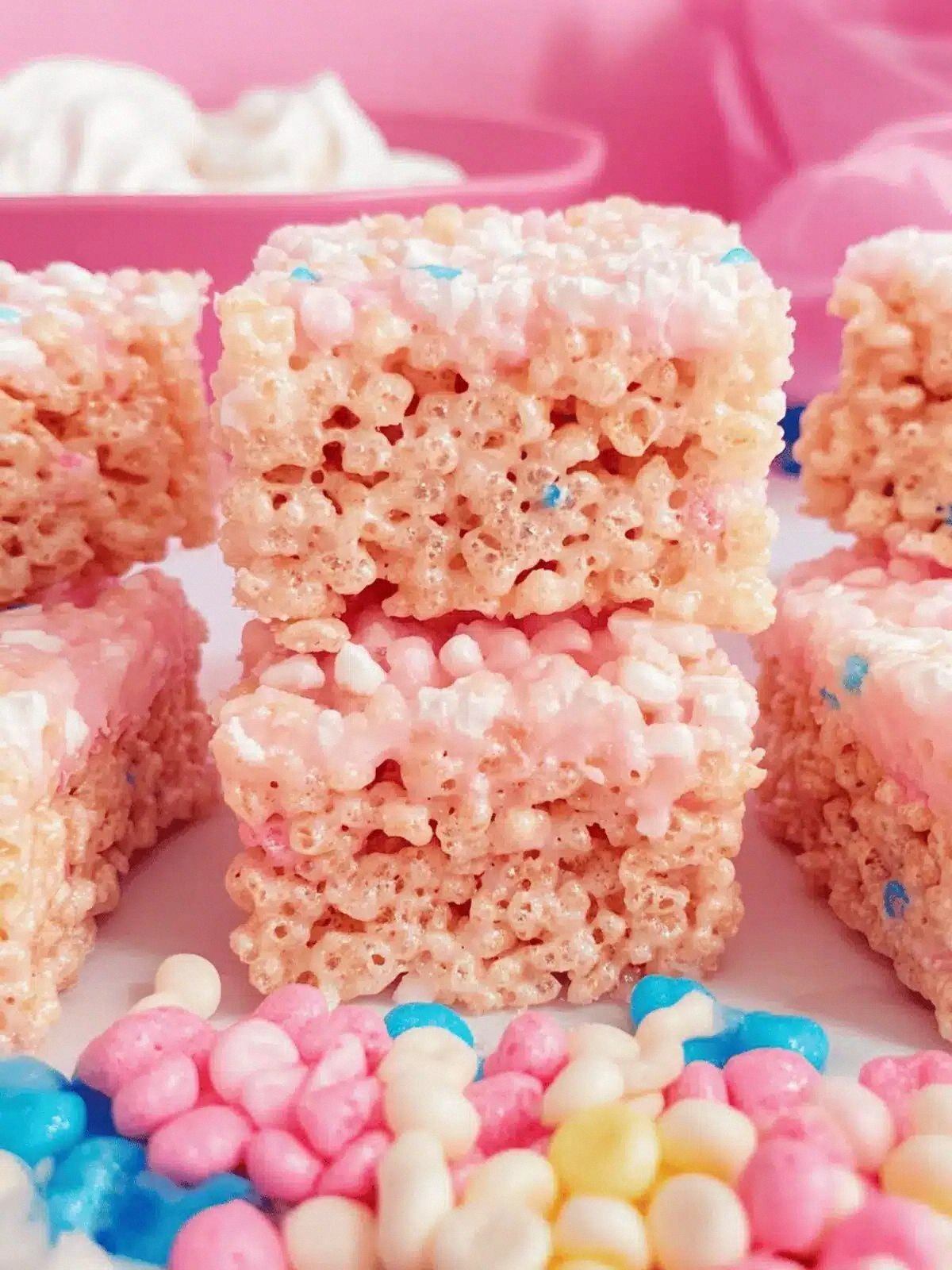 Pink cotton candy is the showstopper. It’s not just a garnish; it’s a flavor bomb that infuses the entire batch with a light, airy sweetness. When added after the heat is turned off, the cotton candy dissolves into the buttery marshmallow mixture, creating a uniform pink hue and a candy‑like texture that’s unlike any other Rice Krispie treat. If you can’t find a bag of pink cotton candy, a small amount of pink sugar or a few drops of pink food coloring can mimic the look.