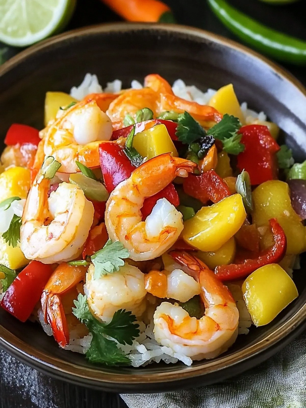 Omit the shrimp and add diced tofu or tempeh instead. Marinate the protein in a little soy sauce and lime juice before cooking. The tofu will soak up the sauce’s flavors beautifully. Serve with the same vegetables and rice for a complete meal. This version is just as satisfying and offers a plant‑based twist.